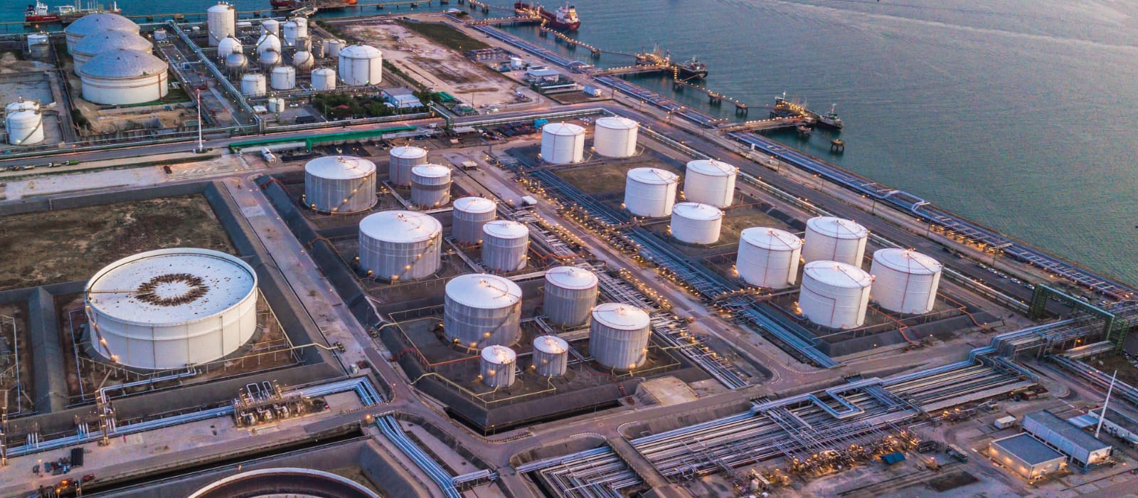 The terminal operates 15 jetties, including 2 capable of receiving Very Large Crude Carriers (VLCCs). These VLCC berths allow simultaneous docking of fully laden vessels and support cargo transfer rates of up to 12,000 m³ per hour. Each berth is equipped with four loading arms, ensuring steady, high-capacity operations with minimal delay.
